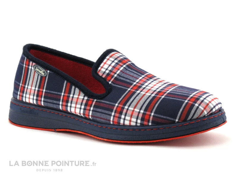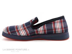 Ces charentaises Homme Semelflex Super Xavier sont en tissu écossais, aux tons de bleu marine, de rouge et de blanc.