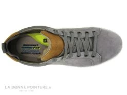 Cette basket de ville Homme Skechers StreetWear est en cuir velouté gris, avec un peu de marron cognac sur la languette et à l’arrière.