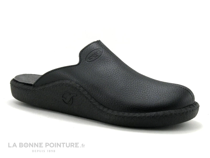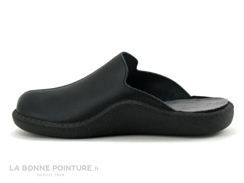 Cette mule d’intérieur Homme Sogex Comte est en cuir noir à l’aspect naturellement grainé.