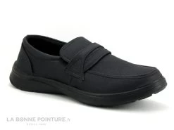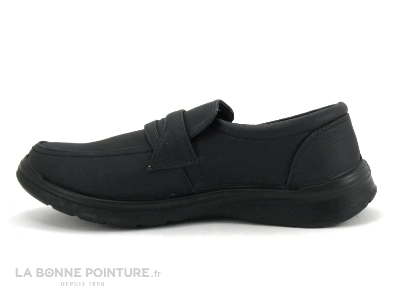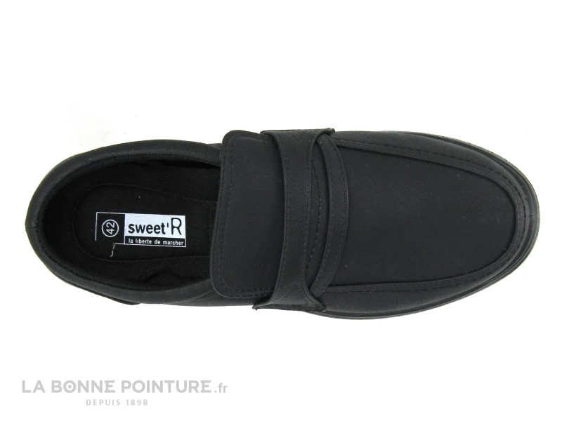 Ce mocassin Homme est noir mat, avec un élastique dissimulé sous la languette qui permet d’élargir légèrement la chaussure Sweet R Homme.