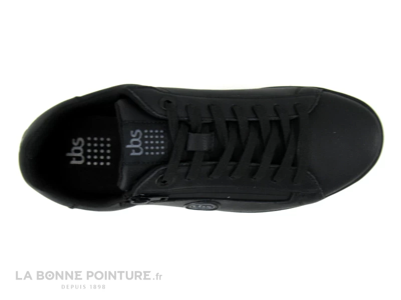 Cette basket basse Homme Tbs est en cuir noir, avec un petit macaron Tbs sur le côté externe.