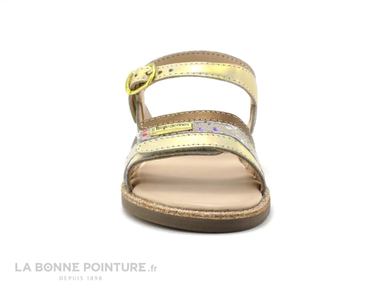 Les nu-pieds fille Les Tropéziennes Iria Or / Rose, des sandales enfant réglables et entièrement en cuir pour les petites filles à la mode !