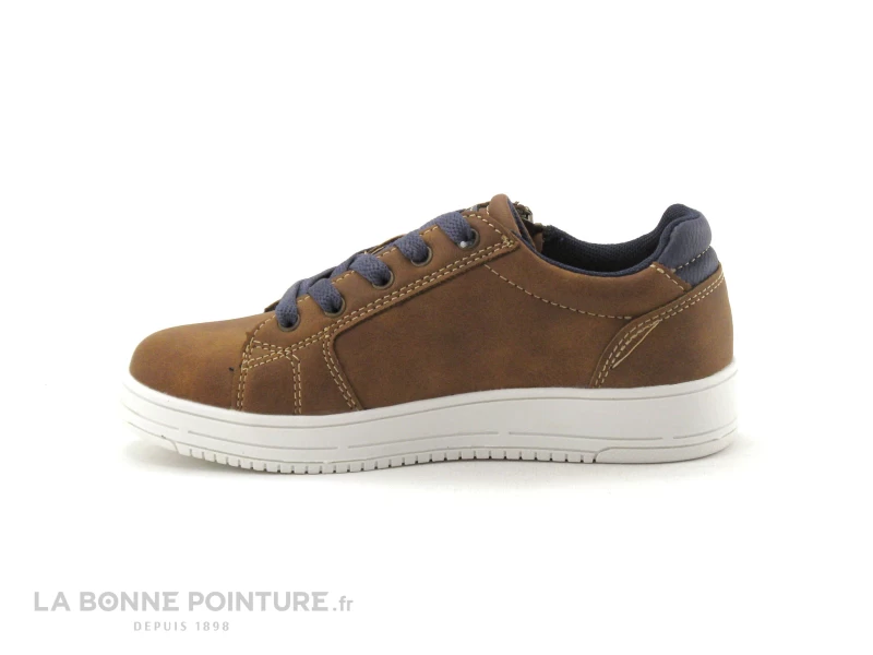 Cette paire de chaussures garçon Ă petit prix Wipop Ouriel est marron nuancĂ©, avec un peu de bleu marine Ă l’arrière.