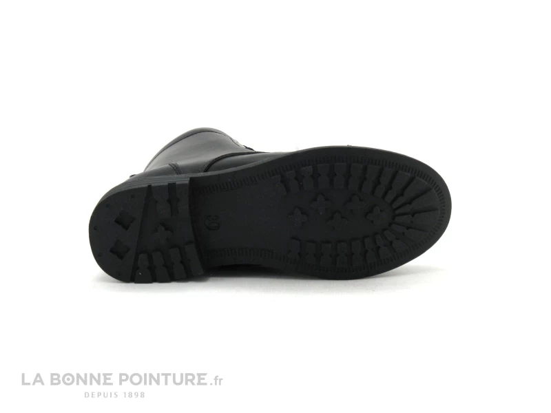 Cette chaussure montante enfant est en simili cuir noir, ornée de petits clous argentés sur la semelle.