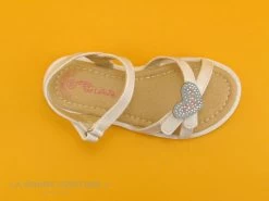 Ces jolies sandales fille Wipop Yoeur sont blanc métallisé, avec un coeur sur le dessus ornée de perles brillantes roses et bleues…