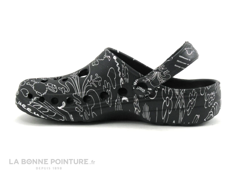 Sandale ET sabot à la fois proposé par la marque Woz? ce modèle de sabots Woz Picasso est de couleur noir et argent.