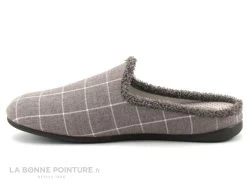 Cette pantoufle mule Homme souple est en textile marron clair à carreaux, avec le pourtour en tissu éponge.